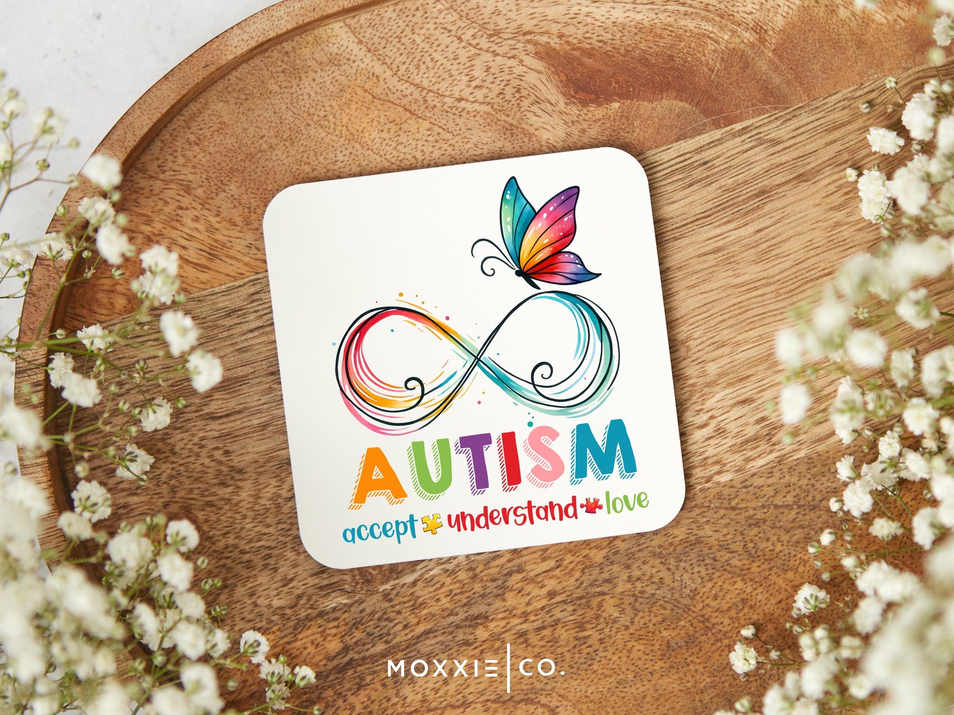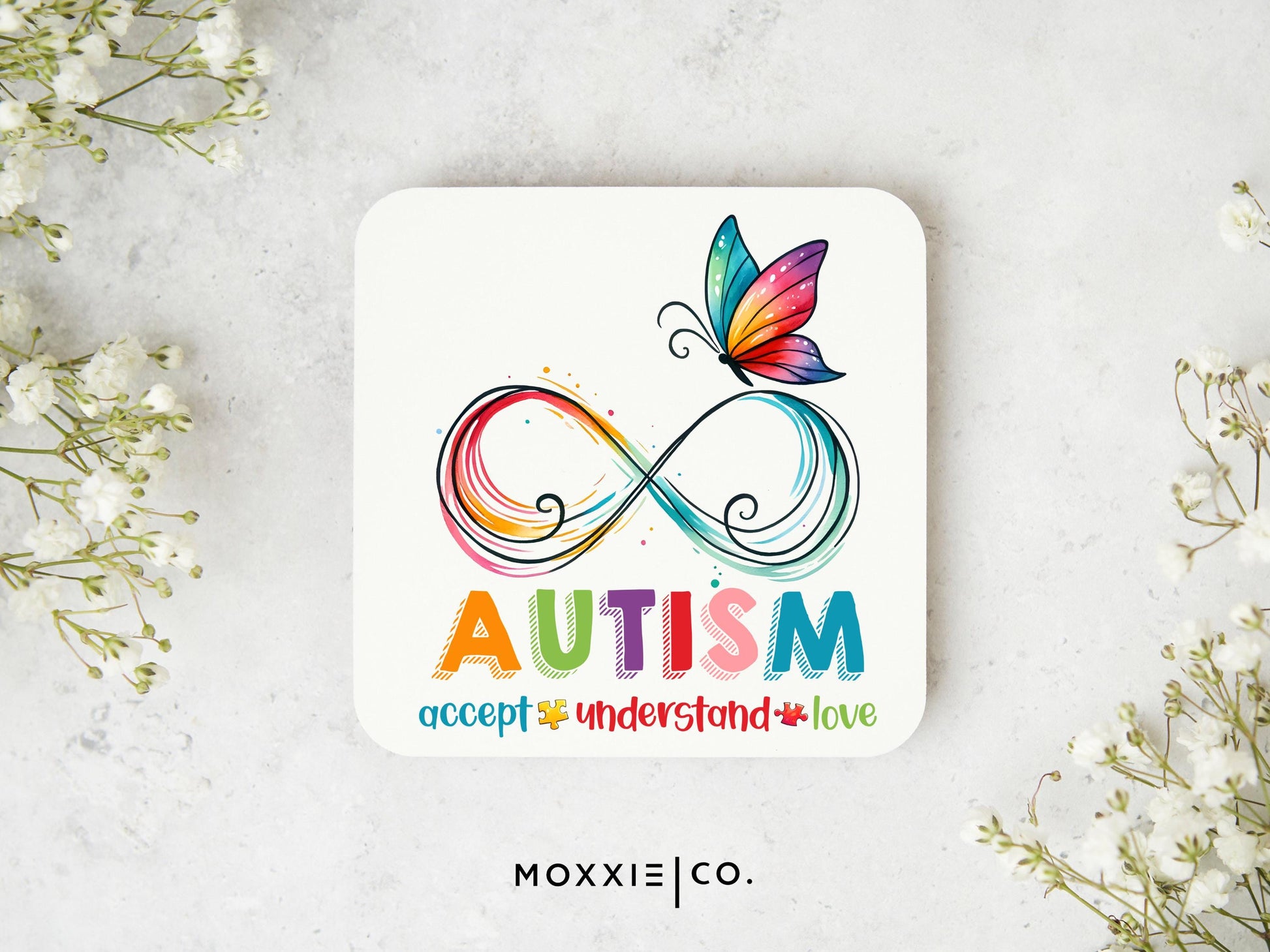Show your support and spread love with this vibrant "Autism Awareness" infinity symbol magnet. Featuring a colorful butterfly gracefully connected to the infinity loop, this magnet highlights the importance of accepting, understanding, and loving those on the autism spectrum. The bold, bright design is accented with the word "AUTISM" in colorful lettering to emphasize inclusion and compassion for everyone.