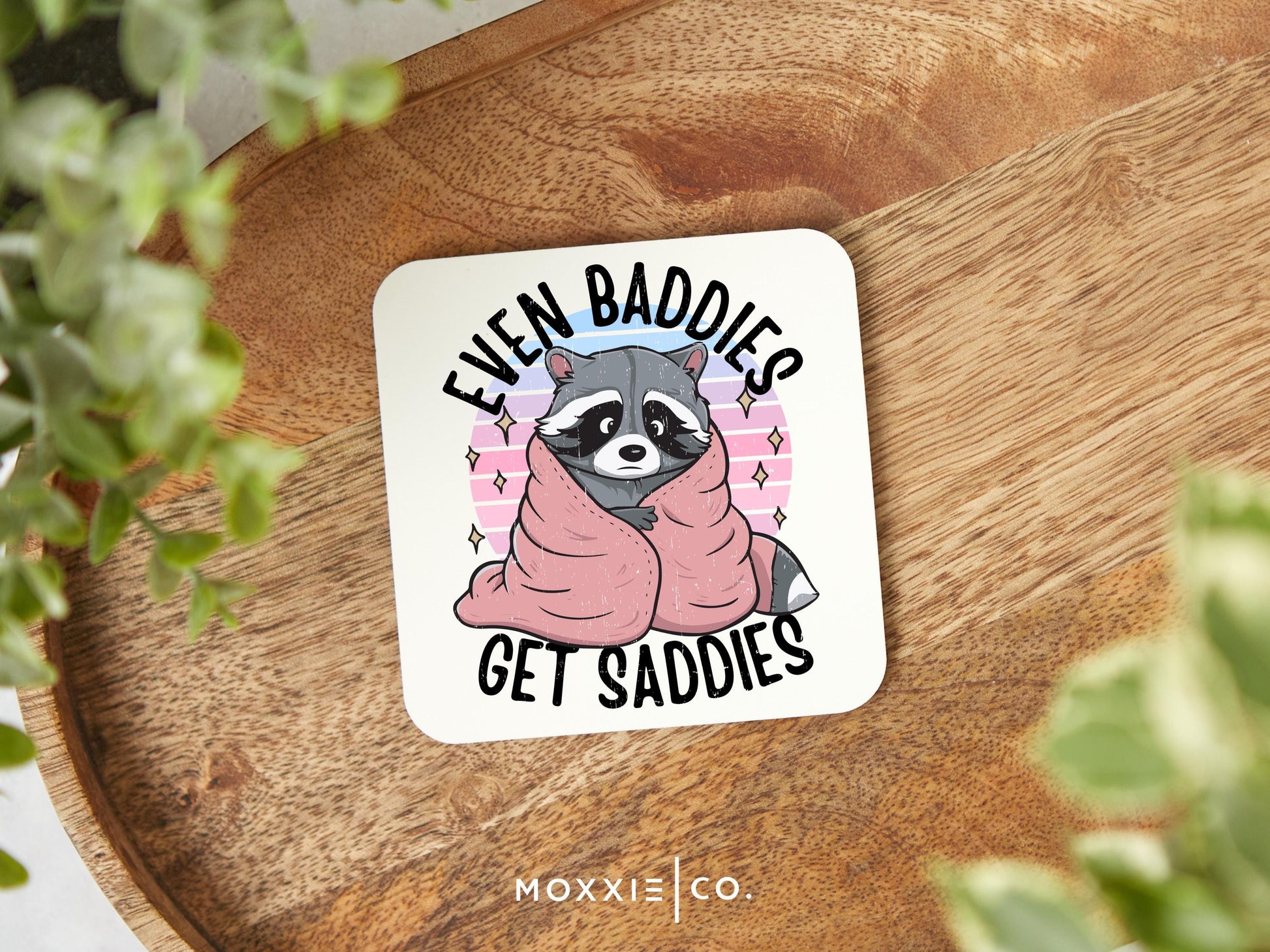 Even Baddies Get Saddies Funny Punny Raccoon Humor Motivational Magnet | Inspirational Gift - Moxxie Co.
