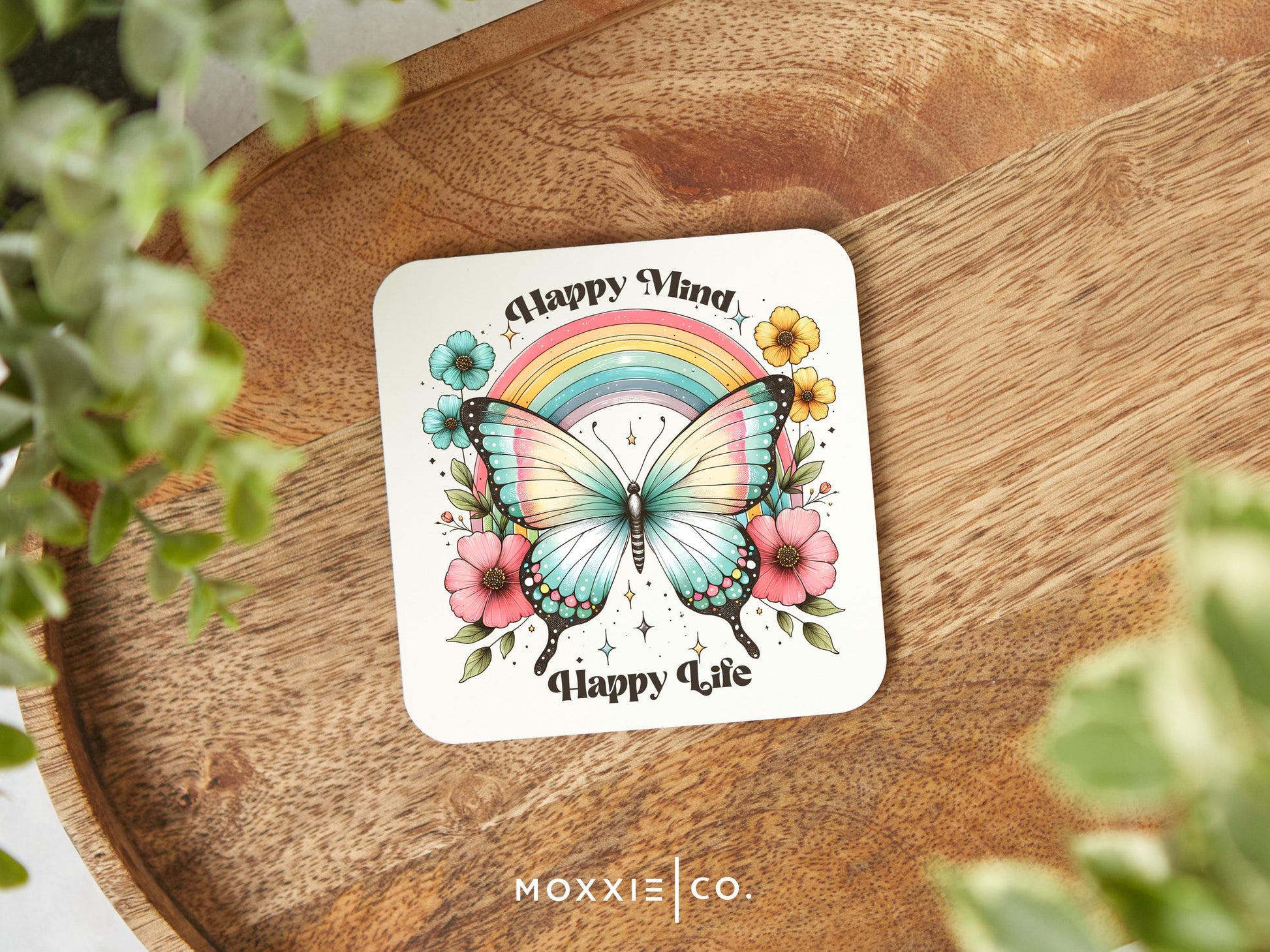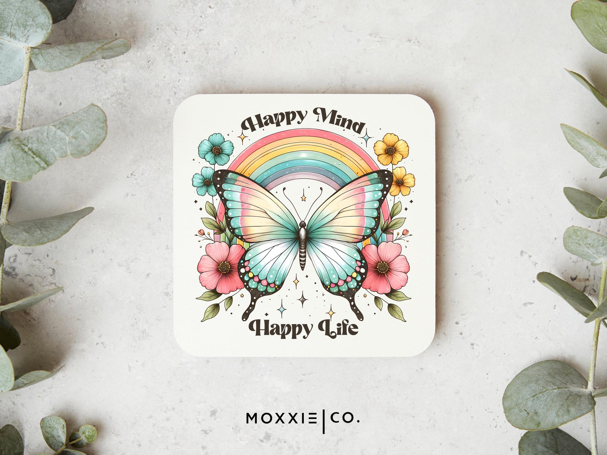 Add a splash of color and positivity to your space with our "Happy Mind, Happy Life" butterfly magnet. This beautifully crafted design features a vibrant butterfly in soft pastels, fluttering across a rainbow backdrop, surrounded by blooming flowers and sparkling accents. The uplifting message, “Happy Mind, Happy Life,” serves as a gentle reminder that cultivating inner peace and joy leads to a more fulfilling life.