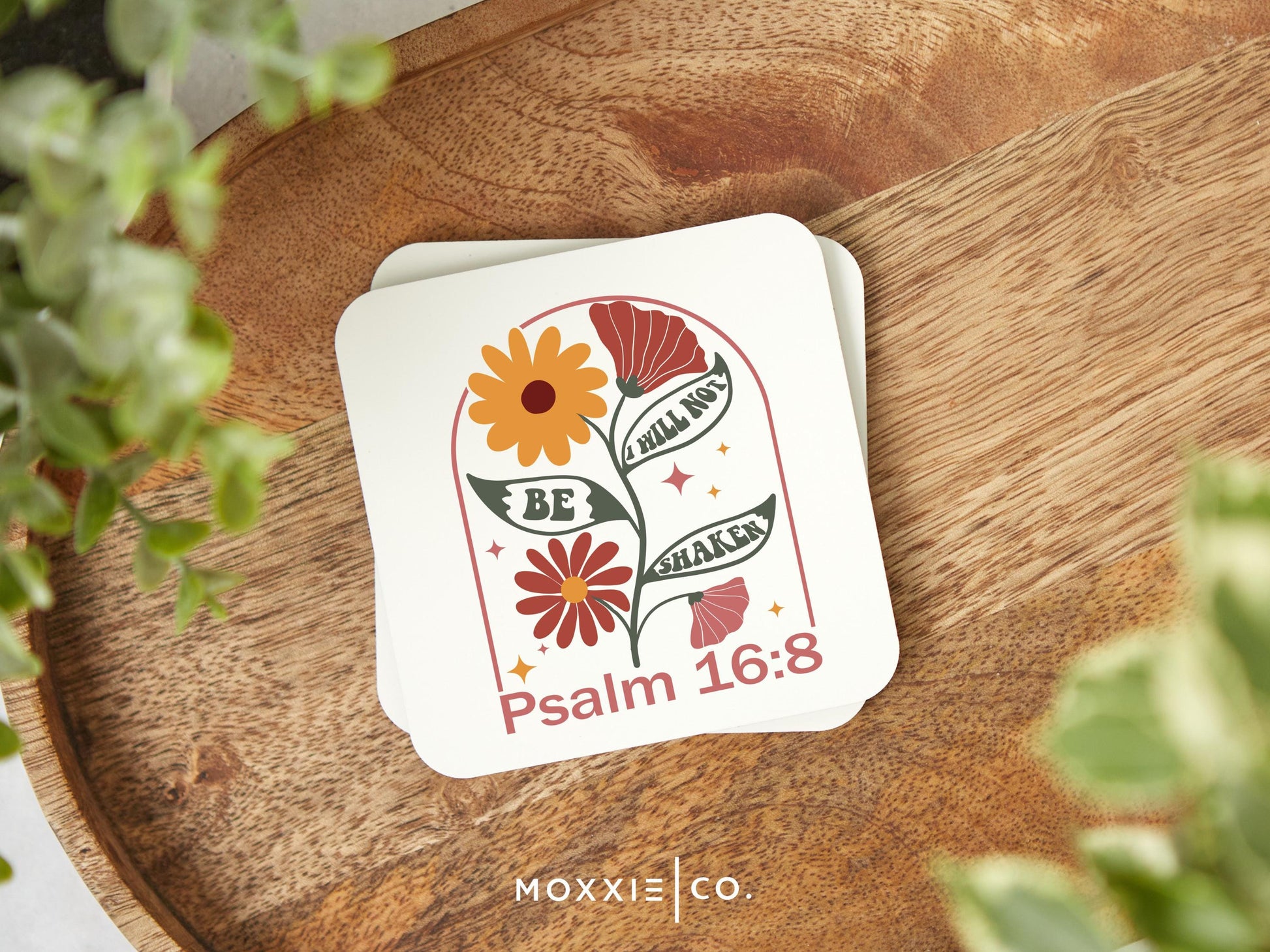 Ground yourself in faith and strength with our "I Will Not Be Shaken - Psalm 16:8" motivational magnet. Featuring a beautiful floral design, this 3" x 3" square magnet incorporates the comforting scripture, “I will not be shaken,” from Psalm 16:8. The illustration of vibrant flowers and the peaceful design radiate calm, resilience, and unwavering faith.
