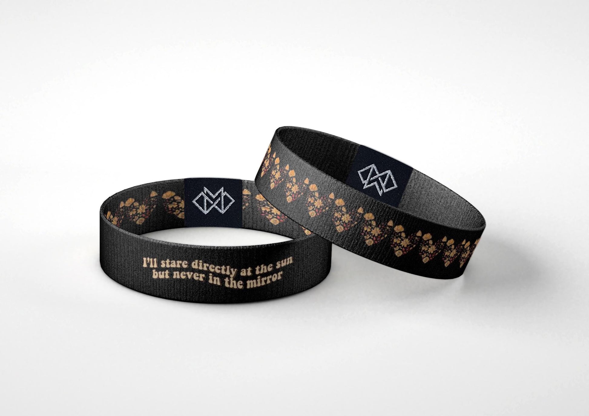 For those who face life head-on, the “I’ll Stare Directly at the Sun” wristband is a reminder to embrace strength while staying true to yourself. Featuring a sleek black base with golden kaleidoscope-style floral accents, this reversible MoxxieBand offers two powerful looks: one side with the bold phrase “I’ll stare directly at the sun but never in the mirror” and the other with a striking patterned design and our signature logo.