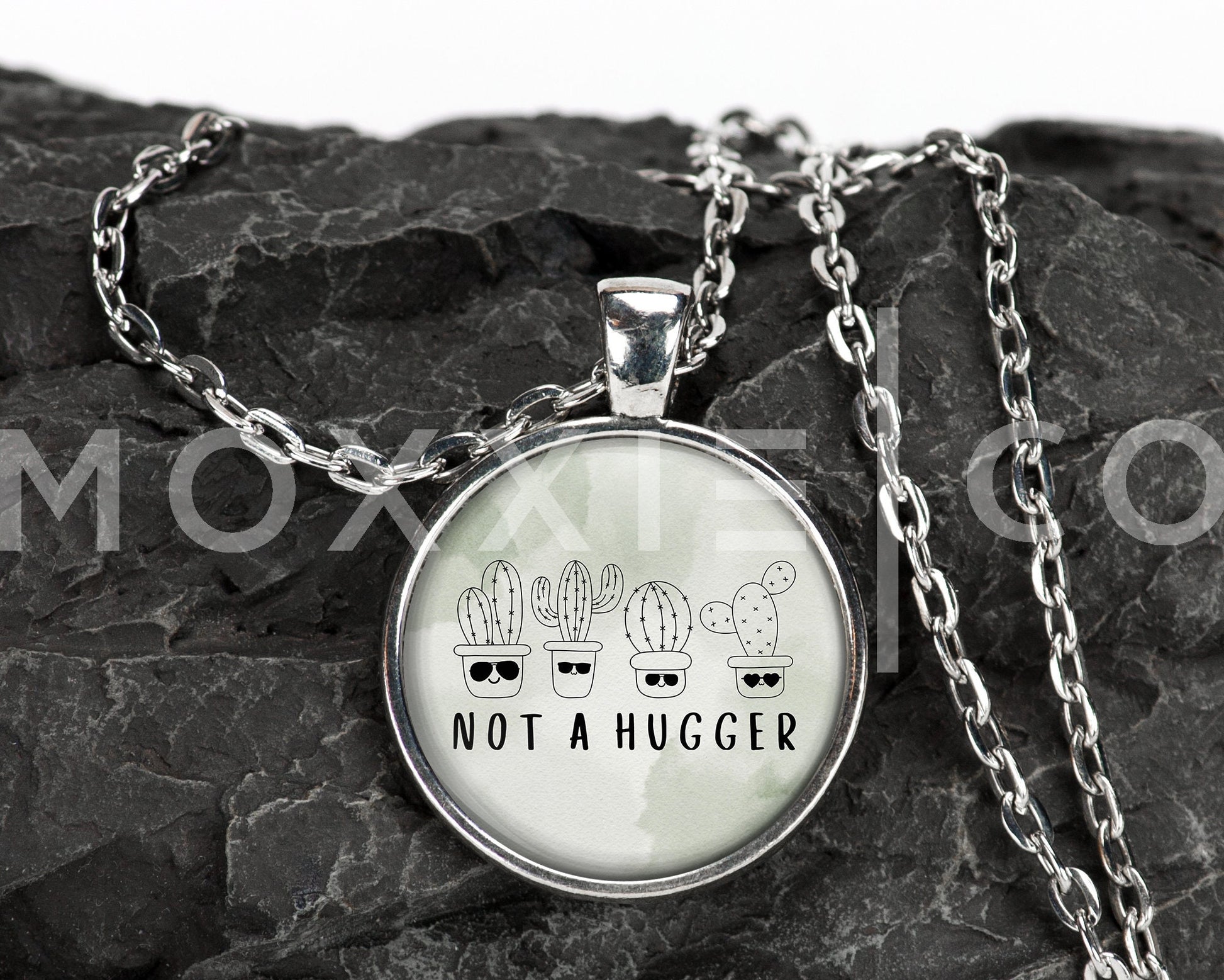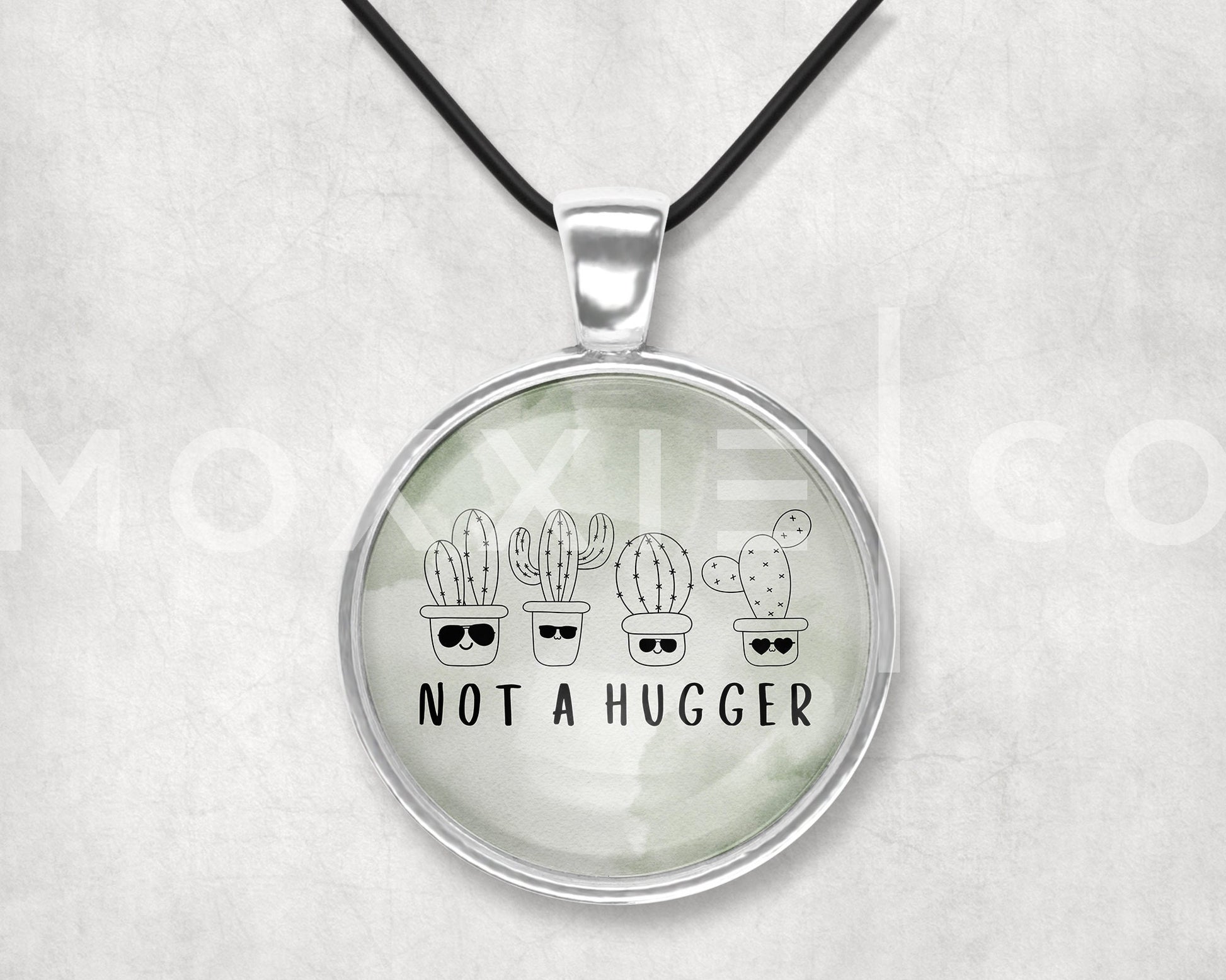 Not A Hugger Cactus Introvert Funny Sarcastic Mental Health Anxiety Awareness Pendant Necklace Jewelry // Gifts for Her // Keychain
