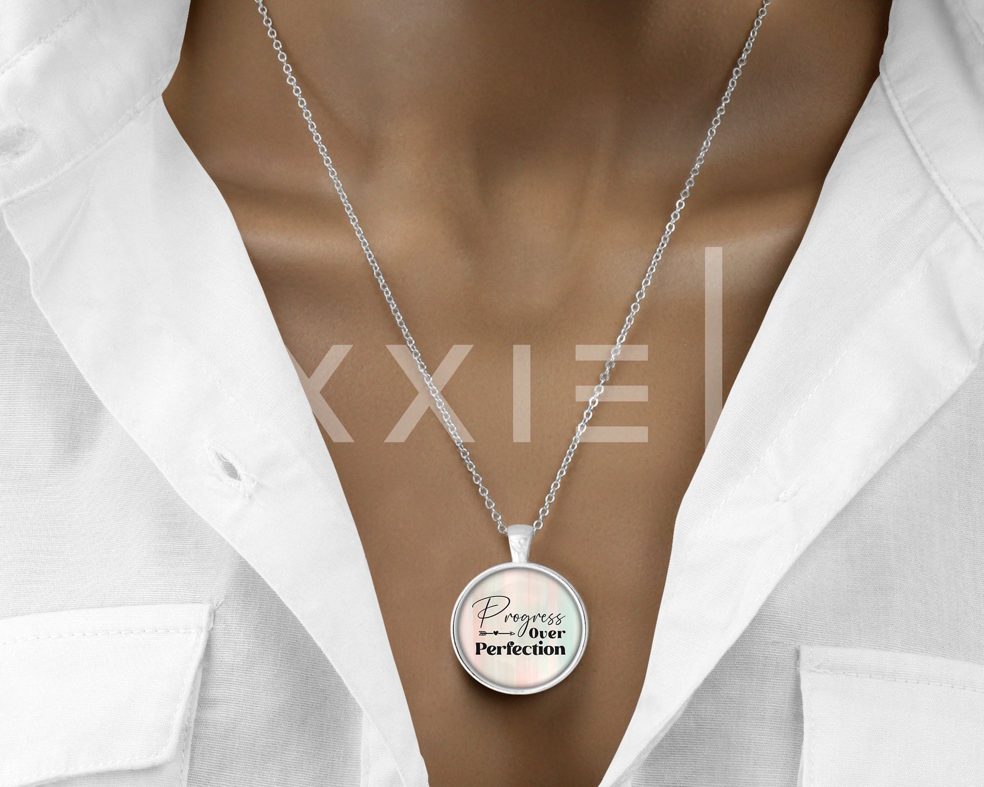 Progress Over Perfection Mental Health Anxiety Depression ADHD Awareness Support Pendant Necklace Jewelry // Gifts for Her // Keychain