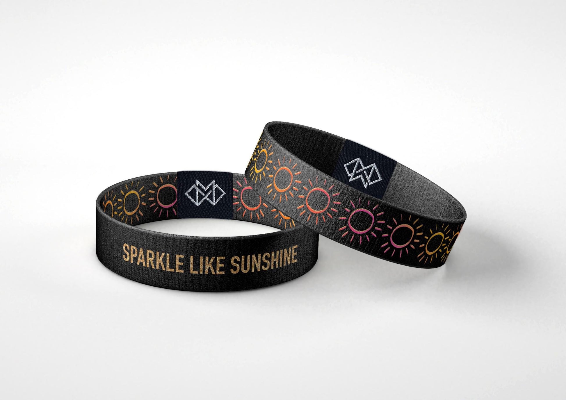 The Sparkle Like Sunshine MoxxieBand is for the bright souls, the light-bringers, the humans who know the power of kindness and radiance. This reversible wristband features a black outer with warm-toned sunshine symbols in orange, gold, and fuchsia. The reverse side is a sleek black band with bold, golden “SPARKLE LIKE SUNSHINE” lettering — a wearable reminder that your light matters.