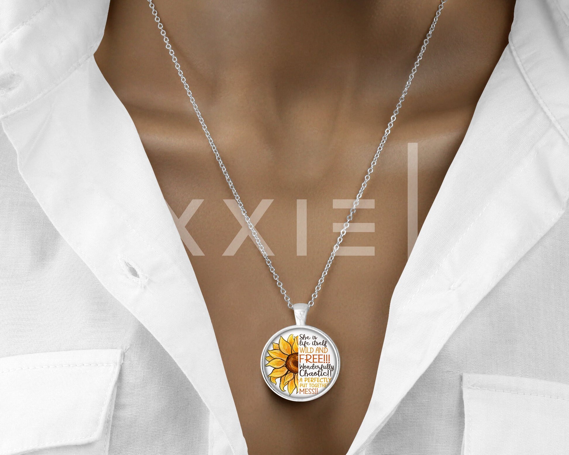 Sunflower Wild and Free Quote Mental Health Anxiety Depression ADHD Awareness Pendant Necklace Jewelry // Gifts for Her // Keychain
