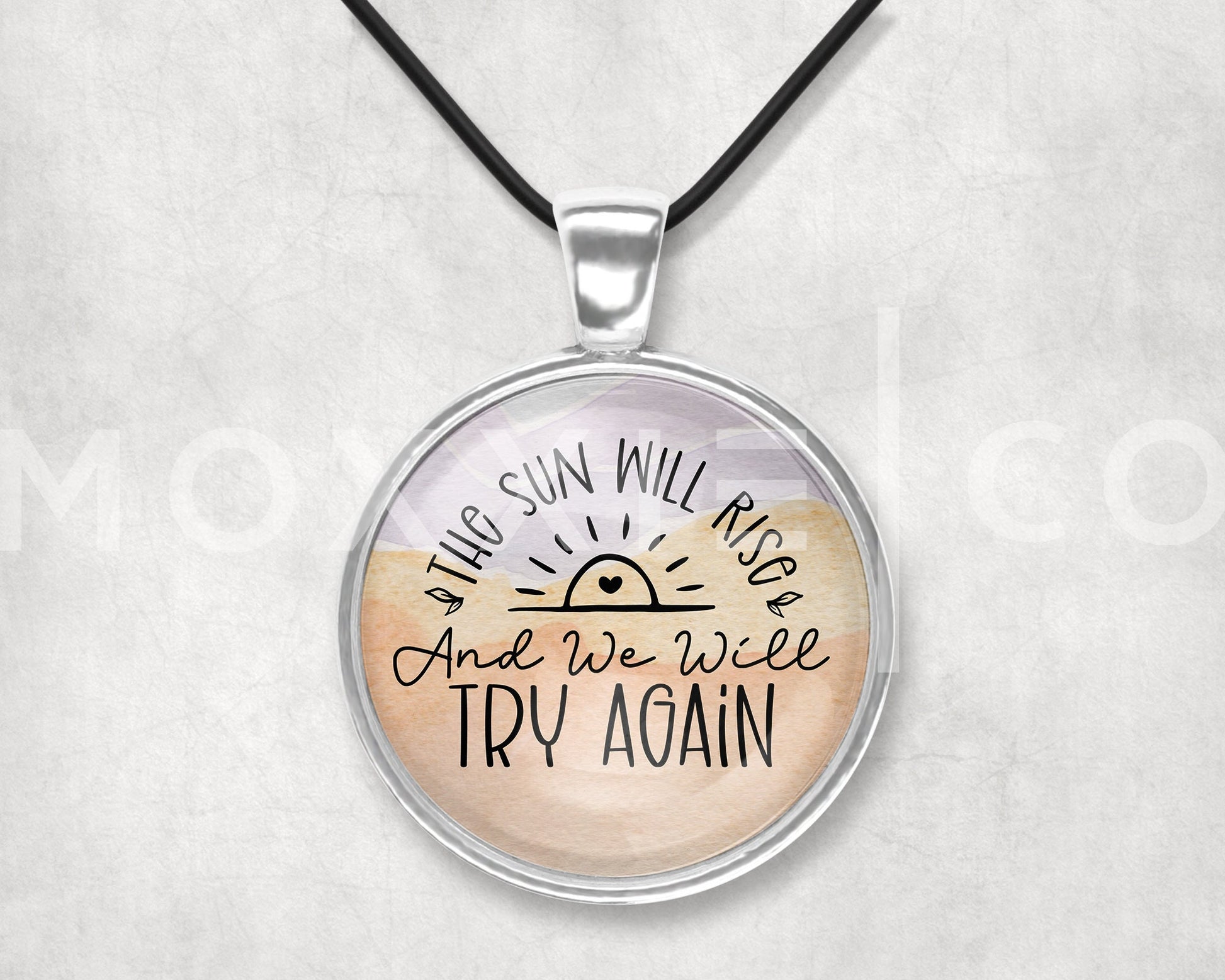 Try Again Mental Health Faith Anxiety Depression Grief ADHD Awareness Support Pendant Necklace Silver Jewelry // Gifts for Her // Keychain